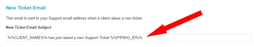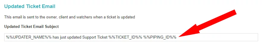Support Tickets – On the Support Tickets tab, ensure that the tag is present at the end of the New Ticket Email Subject and Updated Ticket Email Subject fields.