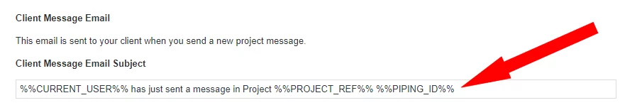Project Messages – On the Projects tab, ensure that the tag is present at the end of the Client Message Email Subject field and the Company Message Email Subject field.