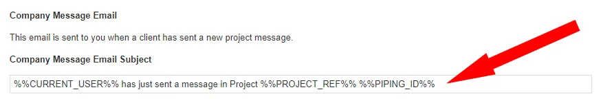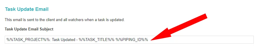 Email Piping supports 4 elements in the system. These are Tasks, Support Tickets, Project Messages and Direct Messages. To make sure that emails that are processed by the script apply updates to the correct item, there needs to be an ID tag in the subject bar of emails sent from the system. This is done with the use of a Replacement Tag – %%PIPING_ID%%